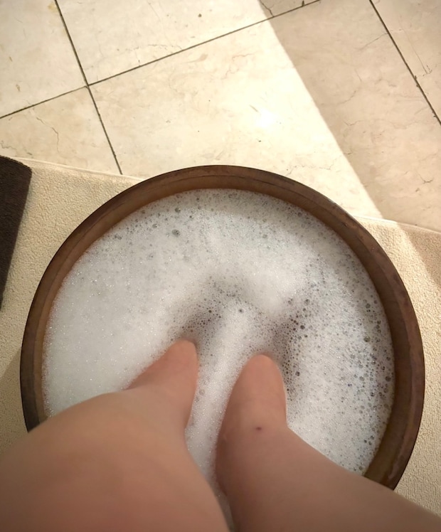 その日の体調や肌質、好みの香りなど細かくカウンセリングを受けた後、まずは足湯から。
