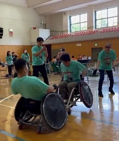企業間の付き合いで、2年前のローポインター大会に軽いのりで景品提供とボランティアで参加したというエコ・ライス新潟。その試合前に、車いすラグビーの体験会で橋本勝也選手から車いす同士でぶつかる「軽いタックル」を受けて、車体が浮かび上がるほどの衝撃を受け、選手の屈強な精神力に魅了されたそう。