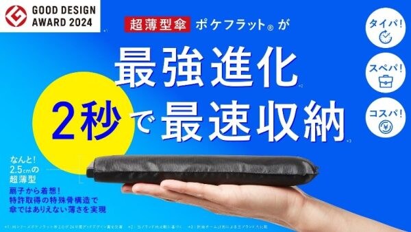 中でも持ち運びのしやすさに特化した薄型傘「ポケフラット」は累計販売本数2400万本越えの代表商品です。