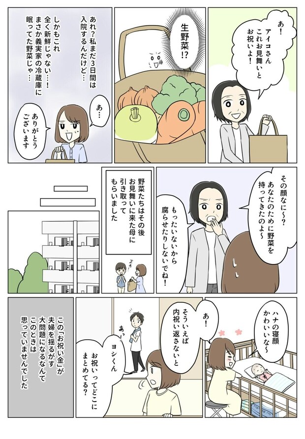 産後、病院へお見舞いに来た義母と義理の妹。手土産はまさかの野菜…