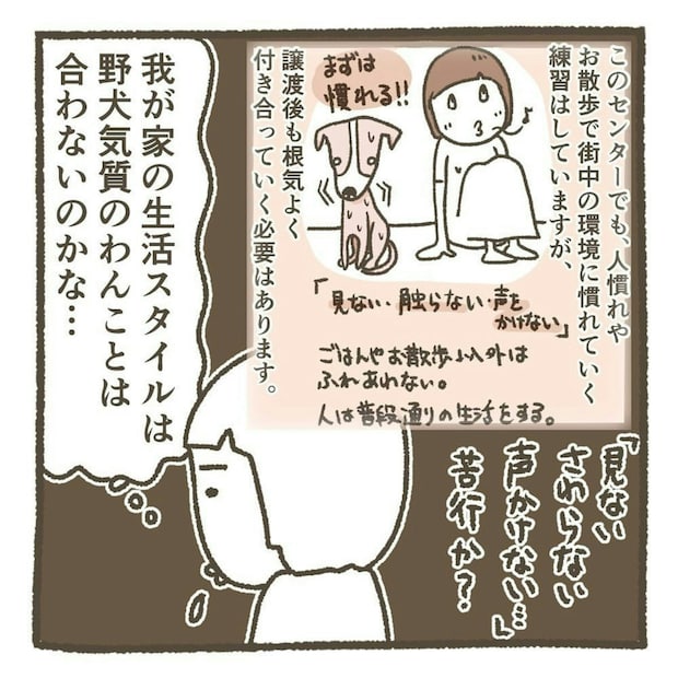 新たに犬を迎えるために、保護団体へ見学を申し込んだ中村さん一家。ところがそこで、「元野犬」と暮らすことの難しさを知ります。中村さん一家が描いている「犬との理想の生活」とは、ほど遠いと感じてしまいました。