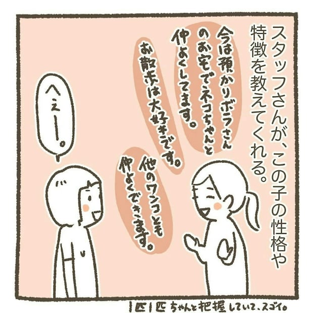 その犬との生活に「希望がないわけではなさそう」と頭を悩ませる中村さん。実際、一緒に暮らしてみないと正解がわからないですよね。だからこそ、飼う前に家族としっかり話し合うことが大切。「生き物を飼うことの責任」について、考えさせられる作品です。