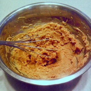 ピーナッツバターと卵を混ぜます。材料はこの2つだけ!