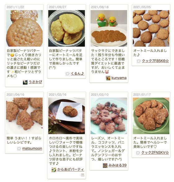 つくれぽでは、オートミーツやドライフルーツなどを入れてアレンジしている方もいらっしゃいました。焼いている間からピーナッツの香りがして癒やされそう。焼き立てのクッキーにコーヒーや紅茶に合わせれば、お家時間が楽しくなりますね。焼き立てでも冷めてからでもおいしいので、ぜひたくさん作って味の違いを楽しんでください。お家にある材料で気軽に作れるピーナッツバタークッキーをご紹介しました。この機会に、作ってみてください。(TEXT:若子みな美)