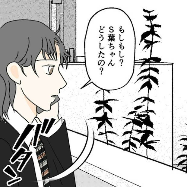 E原さんは、S葉さんからの電話に出ようとしますが、A香さんと一緒にいるため部屋の外へ出ていきました。