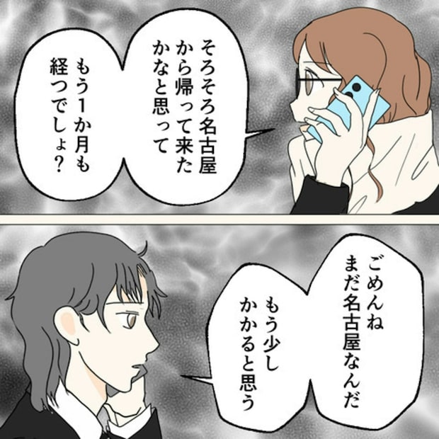 E原さんは、S葉さんに「まだ名古屋にいる」と嘘を告げました。そんなカレの嘘を聞いても冷静に会話を続けるS葉さん。
