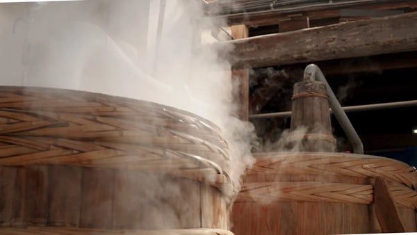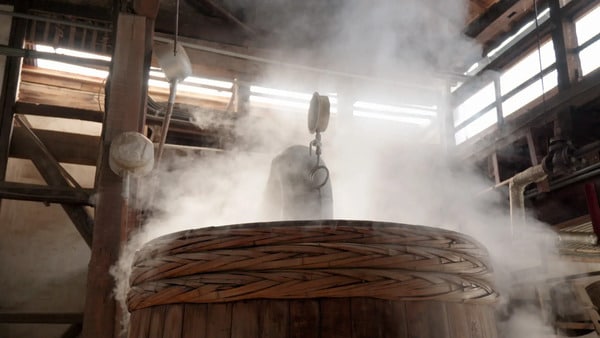 木製蒸留機から立ち上る蒸留酒の息吹