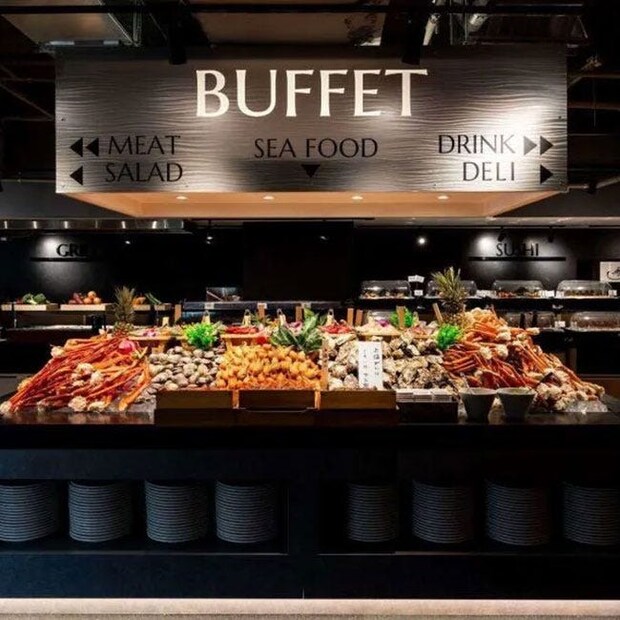 「圧巻の品数と豪華すぎるラインナップなんです。特に、カニや伊勢海老が並ぶ海鮮コーナーは、海外のマーケットを思わせるような迫力」とモチ子さん。