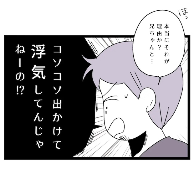 すると、「ほっ、本当にそれが理由か?兄ちゃんと・・コソコソ出かけて浮気してんじゃねーの!?」と、自分のことは棚に上げ、カズヤさんと私を疑うタクヤ。