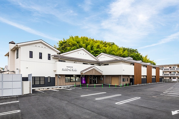 2022年にリニューアルされ、車幅の広い駐車場と白と茶を基調とした和モダンな外観に生まれ変わりました。