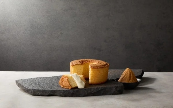 11月7日(金)発売の「1665 CHIFFON CAKE 味噌シフォンケーキ」は、2,160円(税込)。味噌によるやさしい香りと甘みのシフォンケーキには、「あきたこまち」の米粉や味噌を配合。シフォンケーキに添えるマスカルポーネチーズクリームにも「35こうじ味噌」を加え、味噌の風味を感じられる。