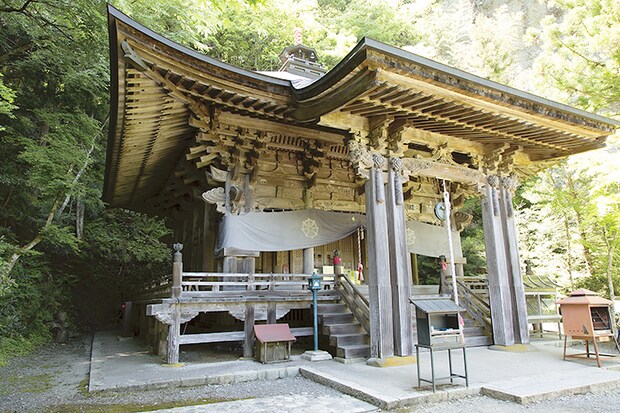 歴史ある山岳霊場は、見る者を圧倒する大岩と橡の原生林に囲まれた寺域。