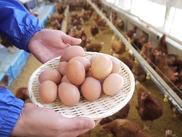 十分な土地で自由に小屋を出入りでき、有機栽培された新鮮な飼料や水を与えられた鶏が産んだ卵で、鶏の福祉と健康に配慮しつつ、高品質な卵の生産を実現。
