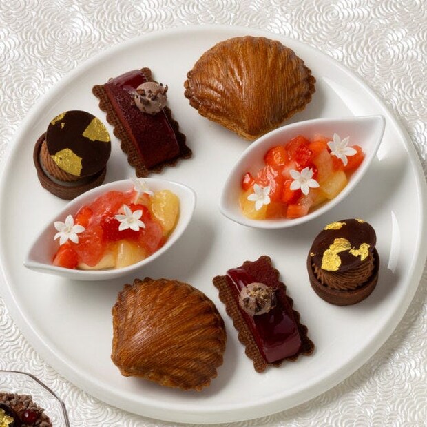 そのほか、折り重ねたブリオッシュ生地に焼いても溶けないビターチョコレートのガナッシュを包み込み、マドレーヌ型でかわいく帆立貝の形に焼きあげた「コキヤージュ」と、カカオパルプピューレでマリネしたグレープフルーツといちごに、マスカルポーネと生クリーム、カスタードクリームを合わせた「グレープフルーツと苺のカクテル」も登場するのでお楽しみに。