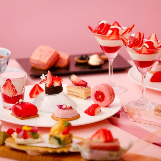 滋賀県草津市で育てられた糖度の高いいちご「みおしずく」と「ヴァローナ」のチョコレートを組み合わせた贅沢アフタヌーンティー。