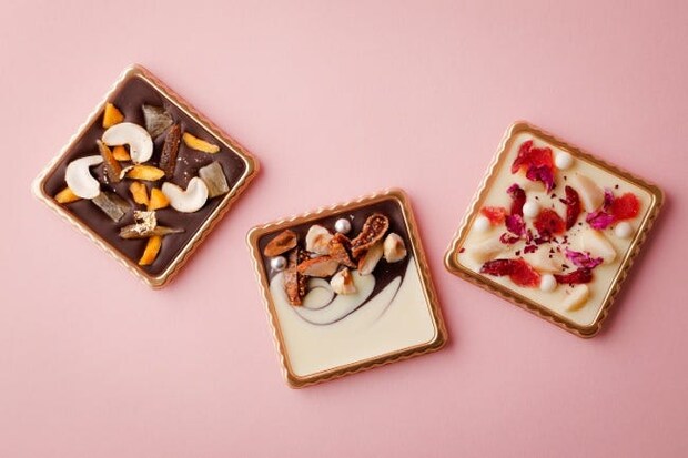 オプションメニューとして用意されるテイクアウト専用の「ナッツとフルーツの彩りマンディアン」も要チェック。ホワイト・ダーク・マーブルの3種チョコに、ナッツやドライフルーツを飾ったお土産用のアイテムは、自宅でもまた特別なひとときを演出してくれるはず。