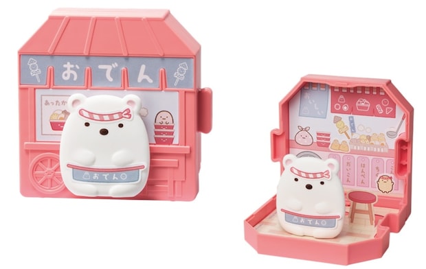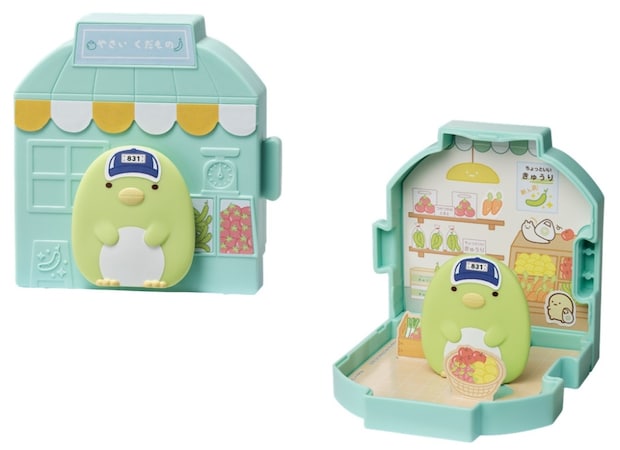 12月12日発売の「すみっコぐらし」第1弾のおもちゃは、『ひみつのおもちゃ』1種を含む全5種。パン屋や八百屋、マクドナルド、おでん屋のごっこ遊びを楽しめる。おもちゃを複数集めると、お店を横につなげて商店街を作ることができる。