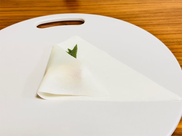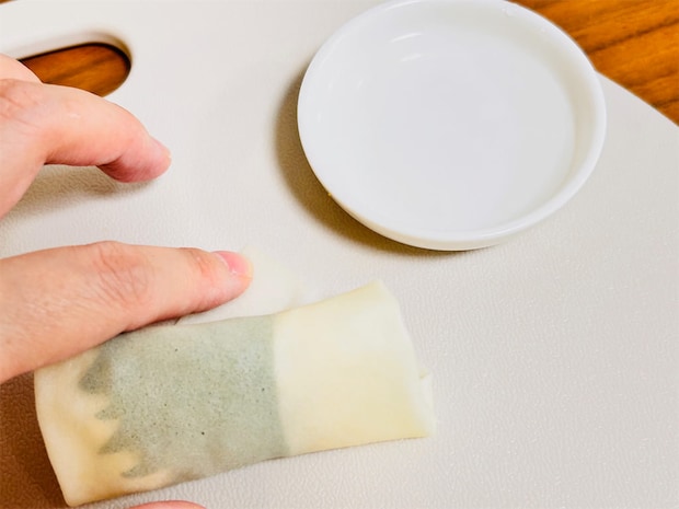 巻き終わりには、水(分量外・適量)を付けてしっかり閉じましょう。