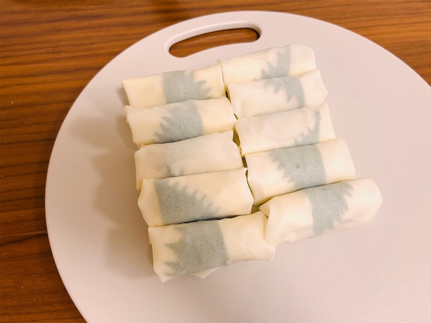 1. 春巻きの皮を冷蔵庫から出して、常温に置いておきます。こうすることで、1枚1枚が剥がれやすくなるようです。