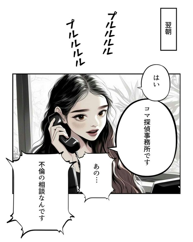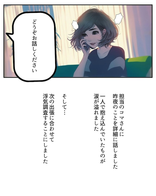 「許せない」と心に誓った亜希は、探偵事務所へ相談の電話をかけました。話をするうちに涙がこぼれ、亜希の辛かった心情が伝わってきます。