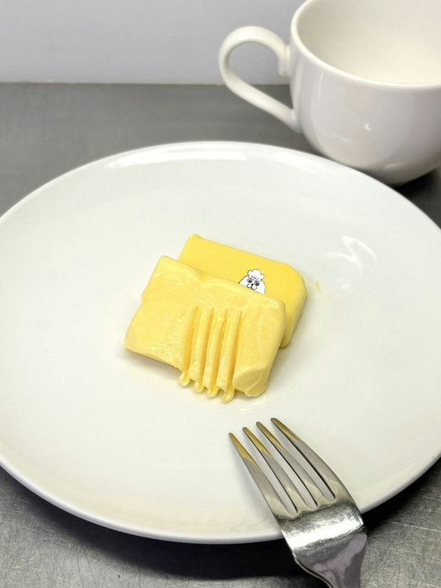 「沸騰したお湯で温めたマグカップで蓋をして5分程放置するだけ」という、驚くほどシンプルな方法でバターがいい感じに柔らかくなるそうです。このカップでコーヒーや紅茶を飲めば、よりおいしい時間をすごせそうですね。