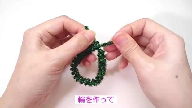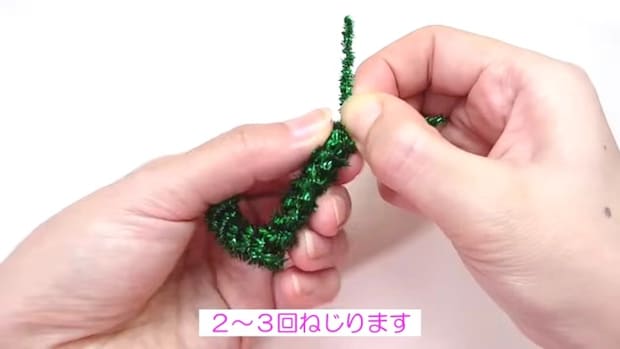 5.両端をクロスさせて輪を作り、2~3回ねじる