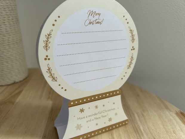 「組み立て式オーナメントカード封筒付き」は、珍しいスノードームモチーフの立体カード。