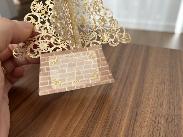 こちらは繊細な切り抜きの透かしがとってもきれいな「レーザーカット立体グリーティングカード」。