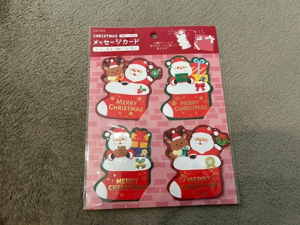 プレゼントにちょっとしたカードを添えたいという人におすすめなのは、プレゼントにぴたっと貼り付けられる「クリスマスメッセージカード」。