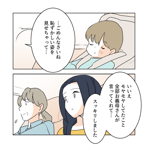 「ごめんなさいね、恥ずかしい姿を見せちゃって」義母は申し訳なさそうにつぶやきました。私は「いいえ、モヤモヤしてたこと全部お義母さんが言ってくれて・・・スッキリしました」と本音と感謝の気持ちを伝えました。義母がはっきり言ってくれていなかったら、私はきっとモヤモヤを抱えたままだったと思います。