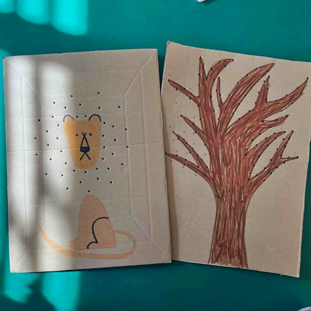 今回はPinterestで見た木のイラストと思いつきでライオンを描いてみました。これだけでかわいくなりそうな予感!!