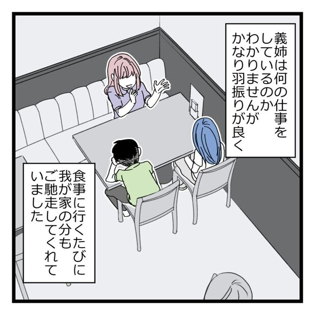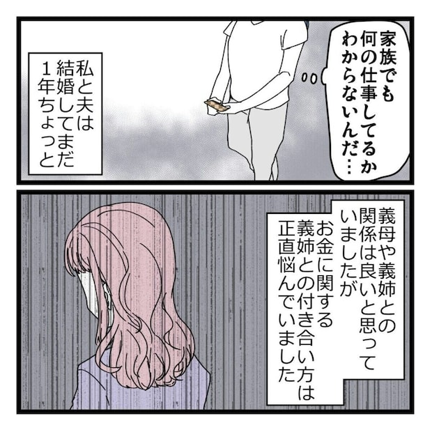 協力し合って生活はうまくいっていたのですが、主人公は義姉のお金遣いが派手で、羽振りがよすぎることに違和感を覚えていました。