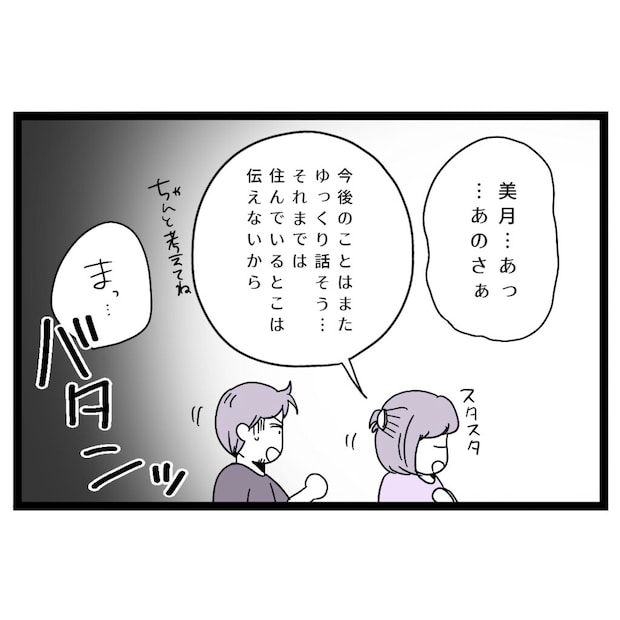 「美月・・あっ・・あのさぁ」タクヤに声をかけられ、「今後のことはまたゆっくり話そう・・それまでは住んでいるとこは伝えないから。ちゃんと考えてね」と言いながら歩き出すと、「まっ・・」と止めようとするタクヤを振り払い、バタンとドアを閉めました。