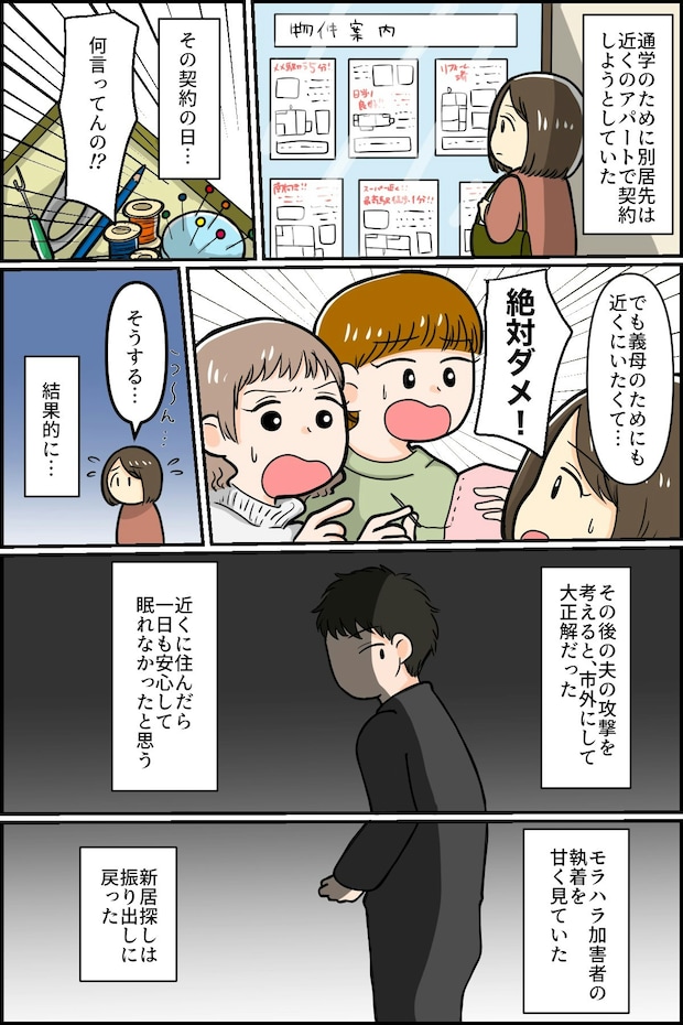 長年、夫のモラハラ・DVに耐え続けてきた主人公。ですがついに、別居をすることに。大切な子どもを守るため、友人たちの力を借り、脱出することに成功。新居すら決まっていませんが、ようやく本当の自由を手に入れることができました。