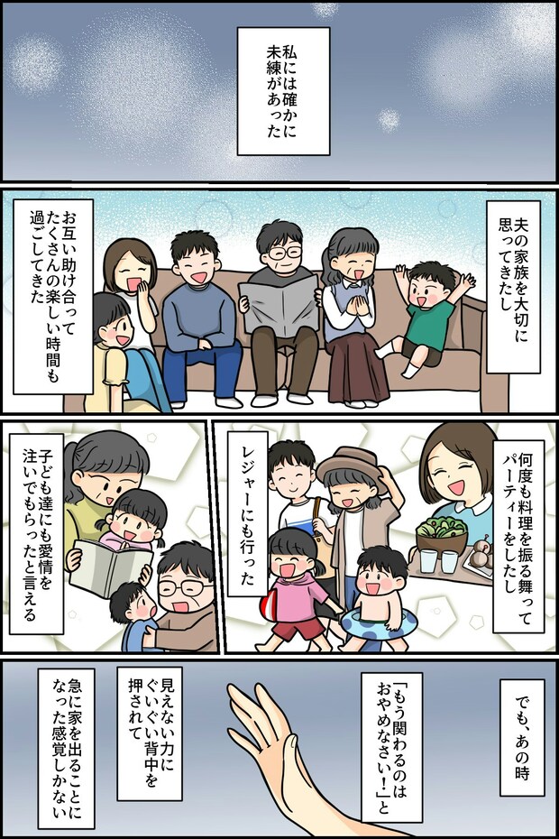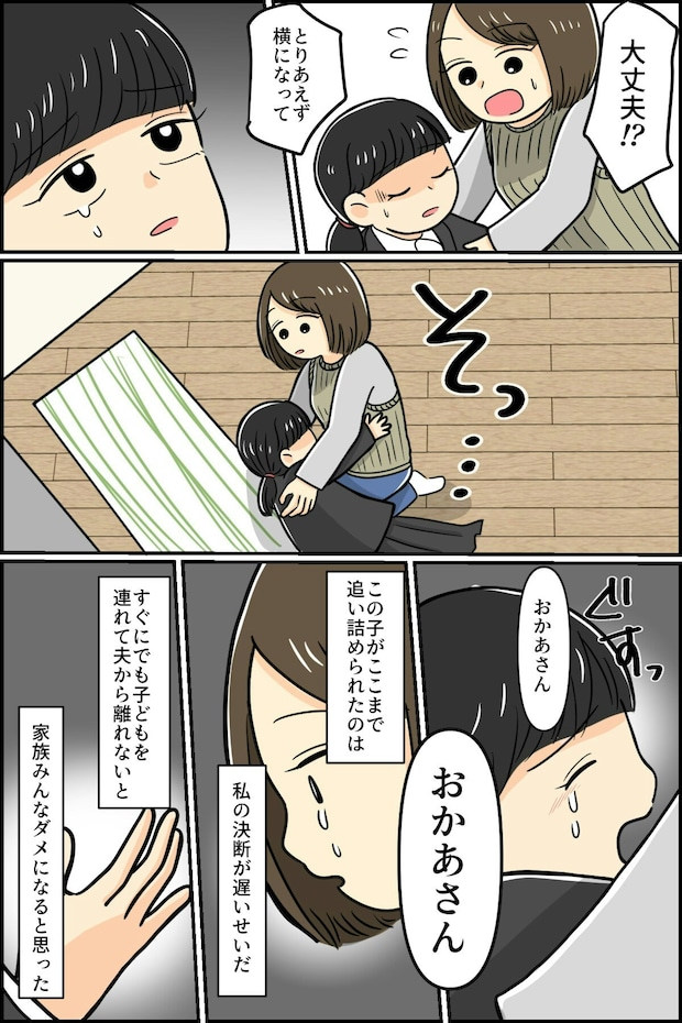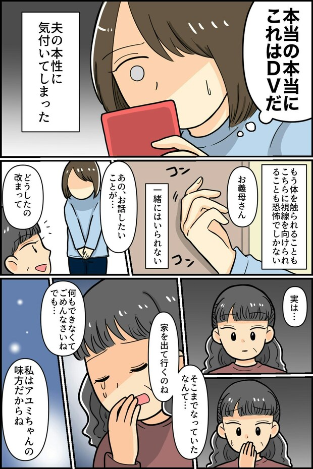 主人公は、モラハラ・DV被害者であると気づくのに、数年かかってしまいました。夫を信じたい気持ちや、義実家への未練が残っていたためでした。ですが、本当に守りたいのは子どもたちであると気づき、大きな一歩を踏み出すことができました。