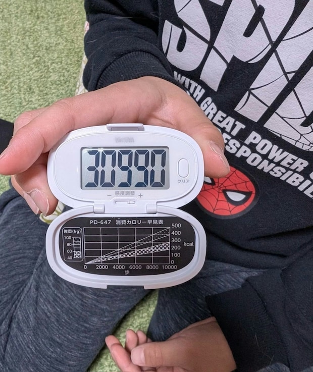 無駄な動きが多い長男8才に、今朝、万歩計をつけてみたら夕方でもう3万歩。ウソやろと思った😂