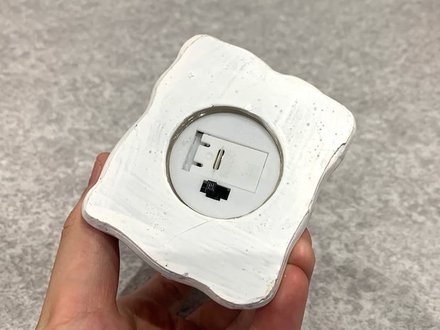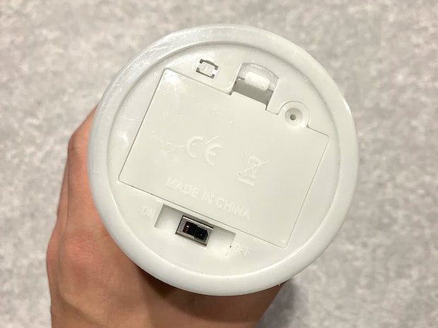 本品はライト付きで、オブジェを光らせることも可能。底には電池を入れる場所とスイッチが付いています。