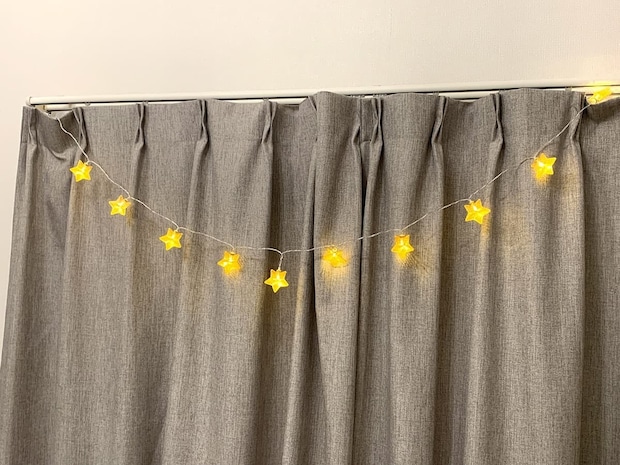 カーテンレールに飾るだけでも、季節感が一気にプラス!星が金色に輝いており、幻想的な雰囲気になります♪