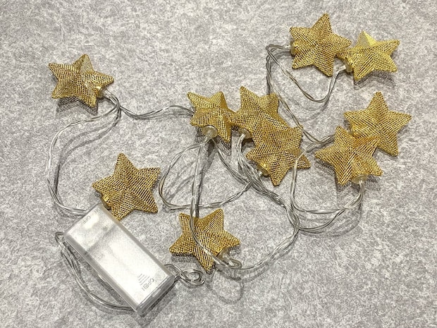 星をモチーフにした長さ163cmのライトで、価格は550円(税込)。別売りの単3形乾電池2本で光るので、近くにコンセントがない場所にも飾れます♪