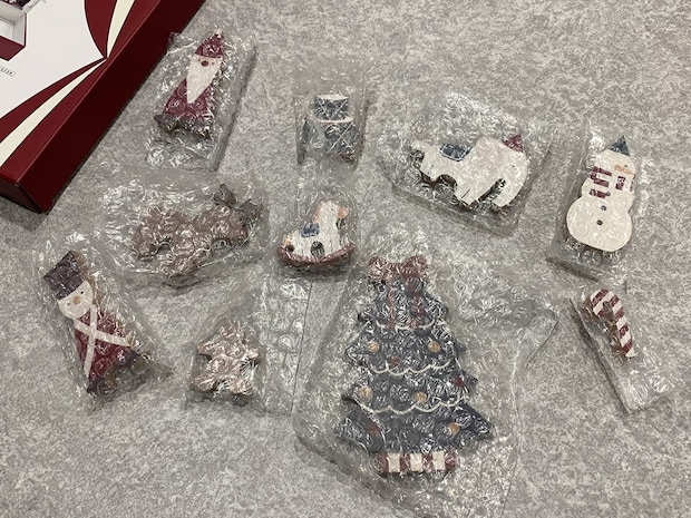 ラインナップとしてはクリスマスツリー、サンタ、雪だるまなど全10種類!小さなおもちゃ箱を開けたときのようなわくわく感のある商品です♪
