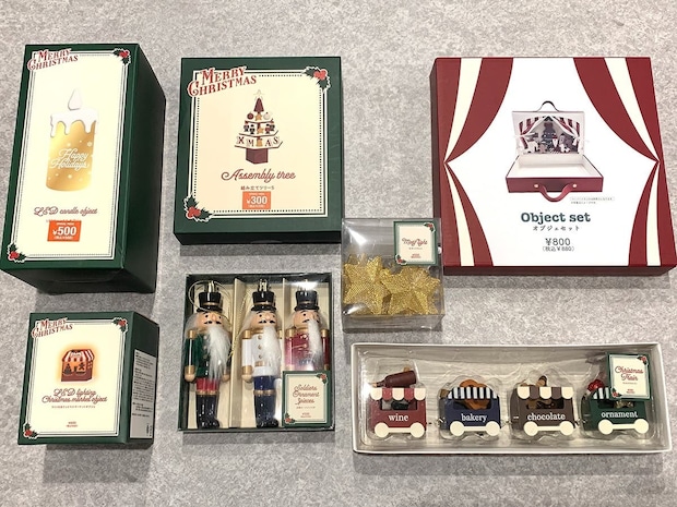 1つの商品でクリスマス関連のオブジェを揃えられるアイテム。価格は880円(税込)で、パッケージに描かれているペーパートランクは別売りとなっています。