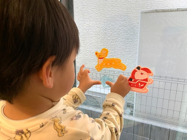 3歳の息子も興味津々で、一人でペタペタ窓に貼り付けていました。貼る・剥がす工程が非常に簡単で、小さいお子さんでも楽しめるアイテムですよ!