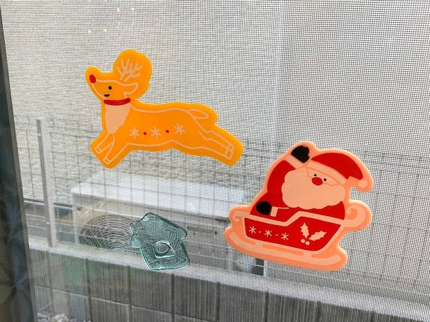 窓に貼ってみましたが、3枚貼るだけでもクリスマス気分がアップ!ハッキリした色合いのポップなデザインで、部屋が楽しい雰囲気になります。