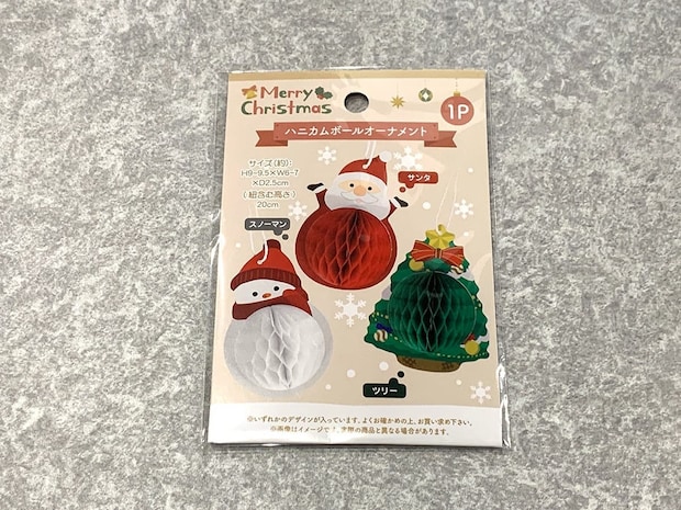 ハニカムの膨らんだ立体感が可愛く、クリスマスツリーに飾ってもそこそこ目立つ存在に。サンタの優しい表情も親しみやすく、見ているだけで笑顔になるデザインです♪