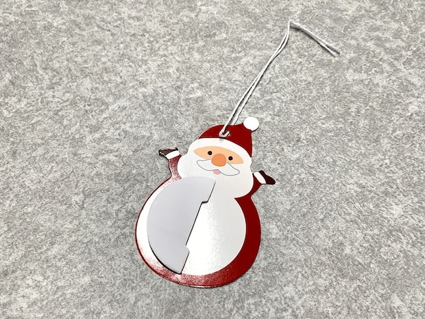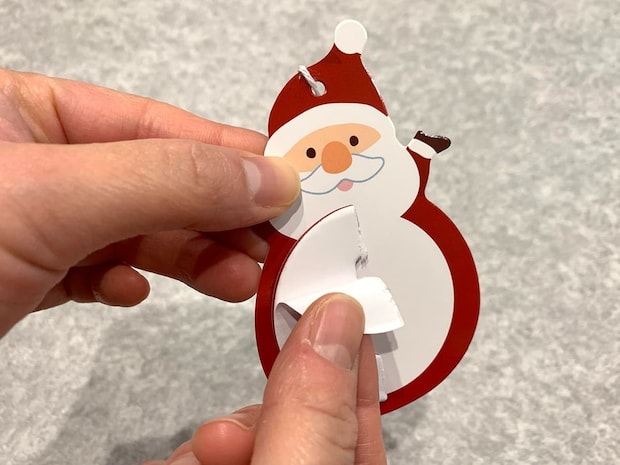 サンタのお腹部分は両面テープになっており、広げてテープで固定する仕組みです。