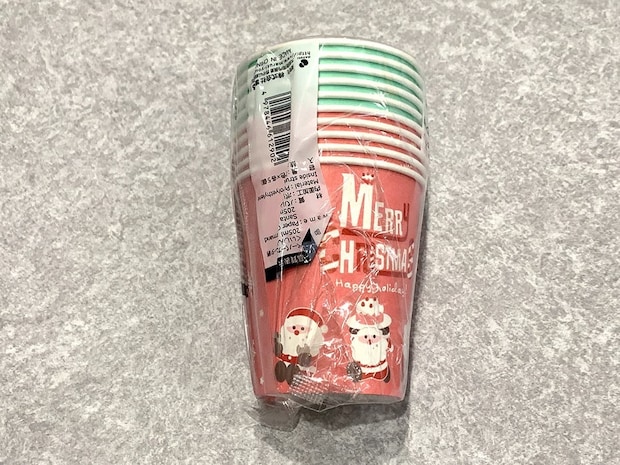 ジュースを入れたカップと、ペーパープレートをあわせてみました。やはりクリスマス仕様の食器が揃うとワクワクしますよね♪