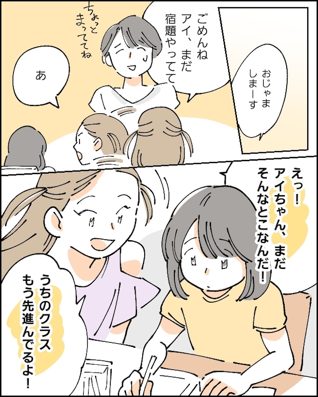 そして、「えっ!アイちゃん、まだそんなとこなんだ!うちのクラスもう先進んでるよ!」と軽~くマウントを取るヨウちゃんに、