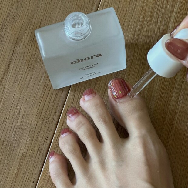 爪とジェルネイルの隙間にリムーバーを追加して浸透させてから、ウッドスティックを使ってゆっくりとオフ。ていねいに時間をかけることで、爪へのダメージを軽減できます。