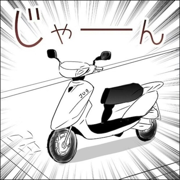 夫は車通勤で、平日の昼間は駐車場には車を停めていないため、無断で駐車しやすい状況になっており、Aiさんは何か対策できないかと考えます。そこで、自分の原付バイクを駐車場に置いておくことを思いつき、早速実践することにしました。