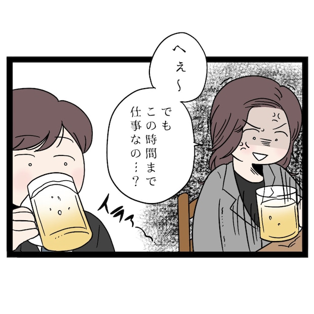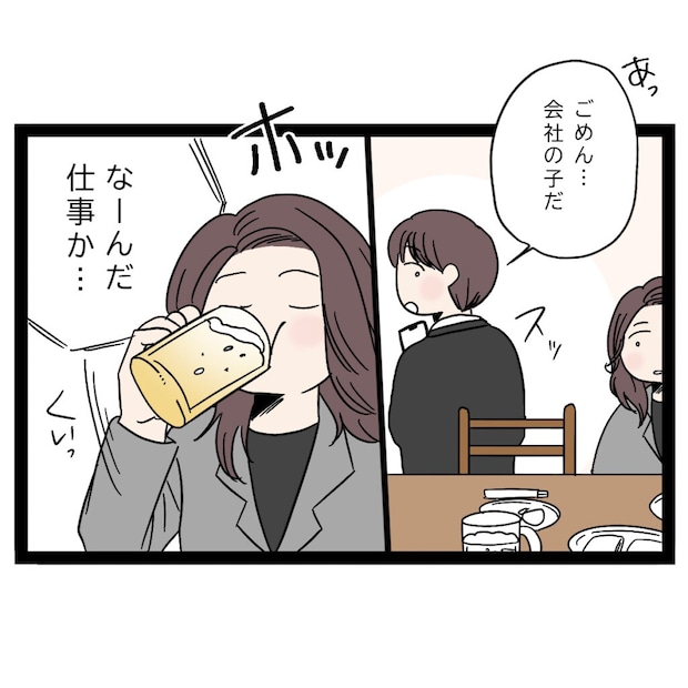 まさひでは着信画面を見ると「ごめん、会社の子だ」と言い、電話に出るために席を離れました。もしかして浮気相手・・・!?と疑っていた私は、仕事の電話だとわかりホッと一安心。手に持っていたドリンクをぐいっと喉に流し込みました。